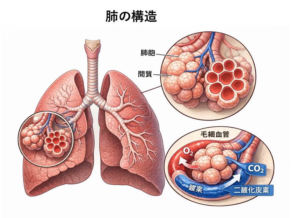 - 肺胞:酸素と二酸化炭素を交換する場所