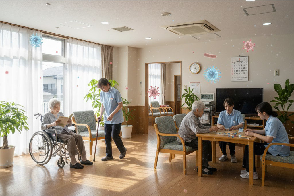 - 高齢化が進む日本では、空気環境の悪い病院や介護施設での集団感染の影響が極めて大きい